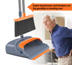 kelamayi Upgrade Broom and Dustpan Set, Self-Cleaning with Dustpan Teeth, Indoor&Outdoor Sweeping, Ideal for Dog Cat Pets Home Use, Stand Up Broom and Dustpan (Gray&Orange)