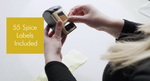- SLEEK DESIGN makes for easy storage and simple organization. With 55 spice labels and the option to stack up to 48 different spices, you'll never dig through a messy cabinet again.
